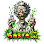 Cartoon elephant holding a cannabis leaf.