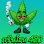 Cartoon elephant holding a cannabis leaf.