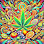 Cartoon elephant holding a cannabis leaf.