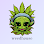 Cartoon elephant holding a cannabis leaf.