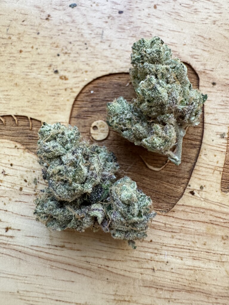 Hanabi Candyz had me screaming in delight. After the first puff my vocalized appreciation led to Mrs. Mendel nosily and noisily intruding on my solo sessionโwhich quickly became a welcome social occasion with my favorite toker. Like Chokiโs other buds from this month the aroma is forest like and clean, with a dominating sweet mint and diesel gas aromas, which gives way to berries peaking through and evolves into a sweet menthol pine. The flavor, however, comes through with some sweet vanilla banana and floral tastes before giving way for earthy, spic and an herbal woodsy and mint finale. Mrs. Mendel, who invited herself to sample the bud as well, found notes of citrus and was very appreciative.